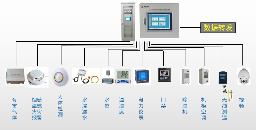 安科瑞電氣股份有限公司根據(jù)配電室實際情況,結合多年的變電站和配電室的運行管理經(jīng)驗,自主研發(fā)了安科瑞配電室綜合監(jiān)控系統(tǒng),實現(xiàn)了智能開關柜運行監(jiān)控、高壓開關柜帶電顯示、電流電壓等負載運行監(jiān)控、母線測溫監(jiān)測、電纜測溫監(jiān)測、環(huán)境監(jiān)測、有害氣體監(jiān)測、安防監(jiān)控、取暖通風、門禁、燈光、風機、除濕機、空調(diào)控制等功能。實現(xiàn)動力環(huán)境各數(shù)據(jù)的檢測與設備控制,實現(xiàn)動力環(huán)境優(yōu)化,避免運行環(huán)境的失控導致配電設備運行故障,保證維護人員安全,延長設備使用壽命,減少配電室粗放式管理導致成本過高,同時實現(xiàn)配電動力環(huán)境的分布式遠程管理。