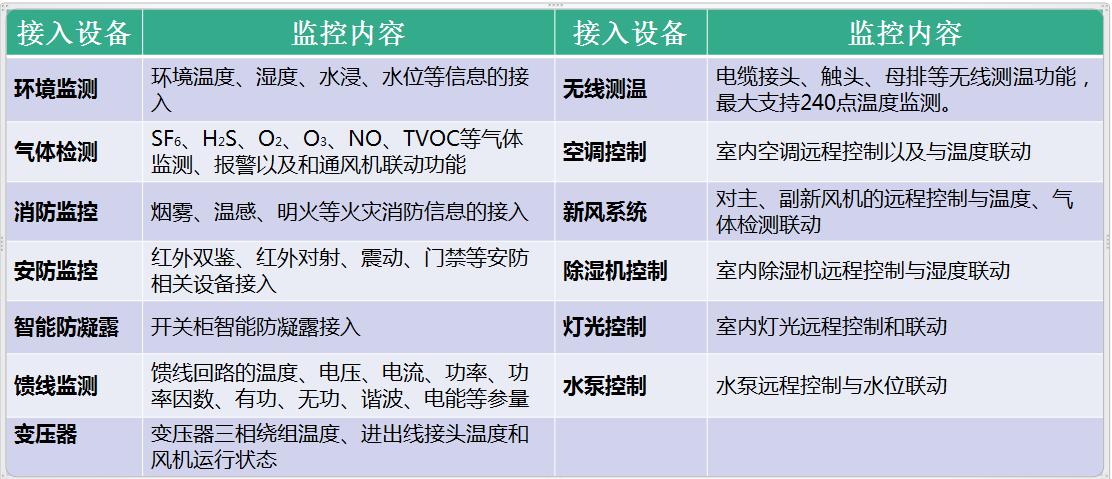 配電室綜合監(jiān)控設備安裝在配電室、箱變、變電所內(nèi),通過采集和傳輸技術,可以實時監(jiān)測配電室內(nèi)的重要場所和設備的工作環(huán)境,如溫度、濕度、電纜溝水位、漏水/水浸、有害氣體(SF