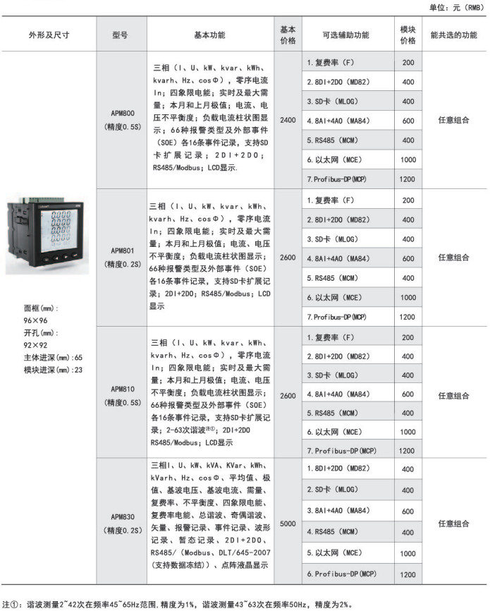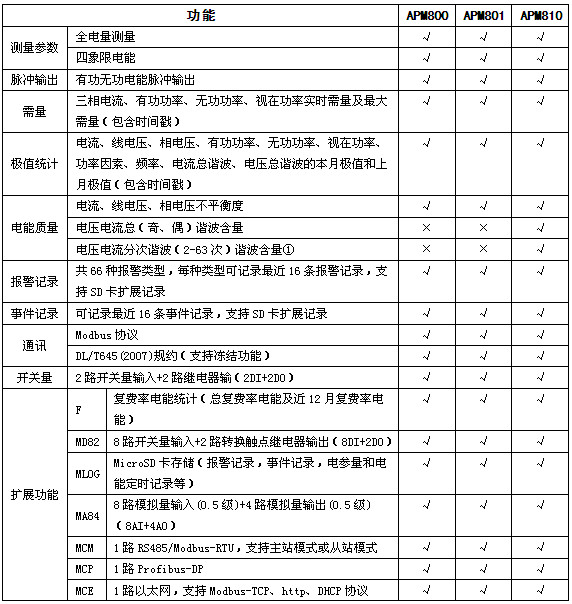 APM系列網(wǎng)絡(luò)電力儀表按IEC標(biāo)準(zhǔn)設(shè)計(jì),具有全電量測量,電能統(tǒng)計(jì),電能質(zhì)量分析及網(wǎng)絡(luò)通訊等功能,主要用于對電網(wǎng)供電質(zhì)量的綜合監(jiān)控診斷及電能管理。該系列儀表采用了模塊化設(shè)計(jì),當(dāng)客戶需要增加開關(guān)量輸入輸出,模擬量輸入輸出,SD卡記錄,以太網(wǎng)通訊時(shí),只需在背部插入對應(yīng)模塊即可。