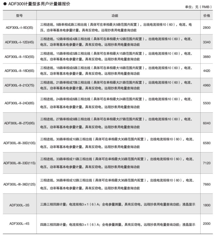 ADF300系列多用戶計量箱是一種電子式智能化多用戶電能表,設(shè)計采用一戶一計量方案,具有計量準確度高、戶與戶之間計量互不干擾、集中安裝、集中管理優(yōu)勢??梢酝瑫r計量12戶三相、36戶單相、單/三相回路混合用電狀況。